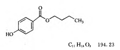 本品为4-羟基苯甲酸丁酯,由正丁醇和对羟基苯甲酸酯化而成。按干燥品计算,含C