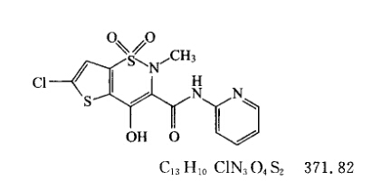 本品为6-氯-4-羟基-2-甲基-3-(2-吡啶氨基甲酰基)-2H-噻吩并[2,3-e]-1,2-噻嗉-1,1-二氧化物。按干燥品计算,含C
